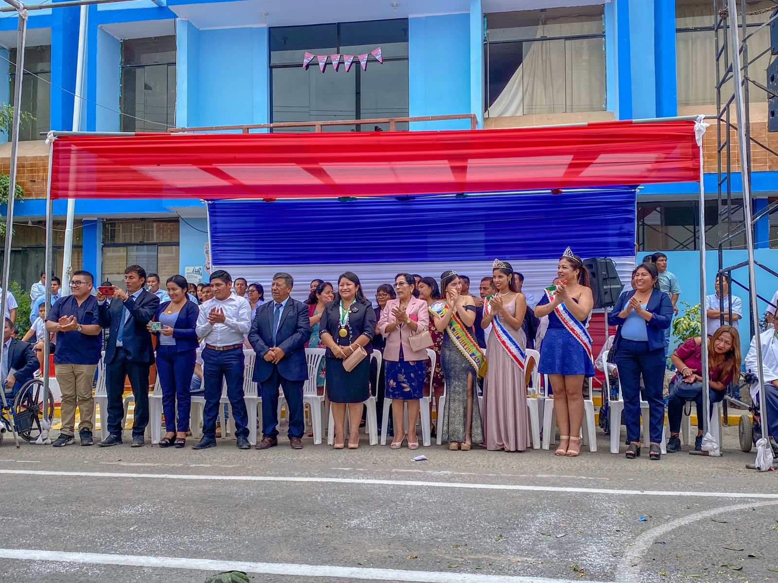 Acompañando a las autoridades locales, la alcaldesa, participó del desfile cívico escolar en el día central de aniversario distrital.