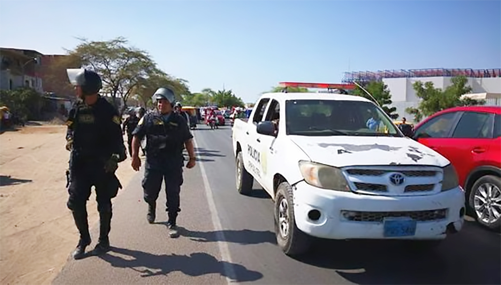 Pero el conductor, al verlos, aceleró el camión para evitar que lo asalten, pero hizo que los delincuentes lo persigan por varios metros en plena carretera e incluso para que trate de detenerse, uno de los sujetos, que fue descrito de tez morena y cabello corto y que vestía polo color plomo y gorra negra, le disparó dos tiros con dirección a la cabina donde iba el conductor que se no detuvo e hizo que los asaltantes fuguen con dirección a otro lugar sin poder lograr su cometido.