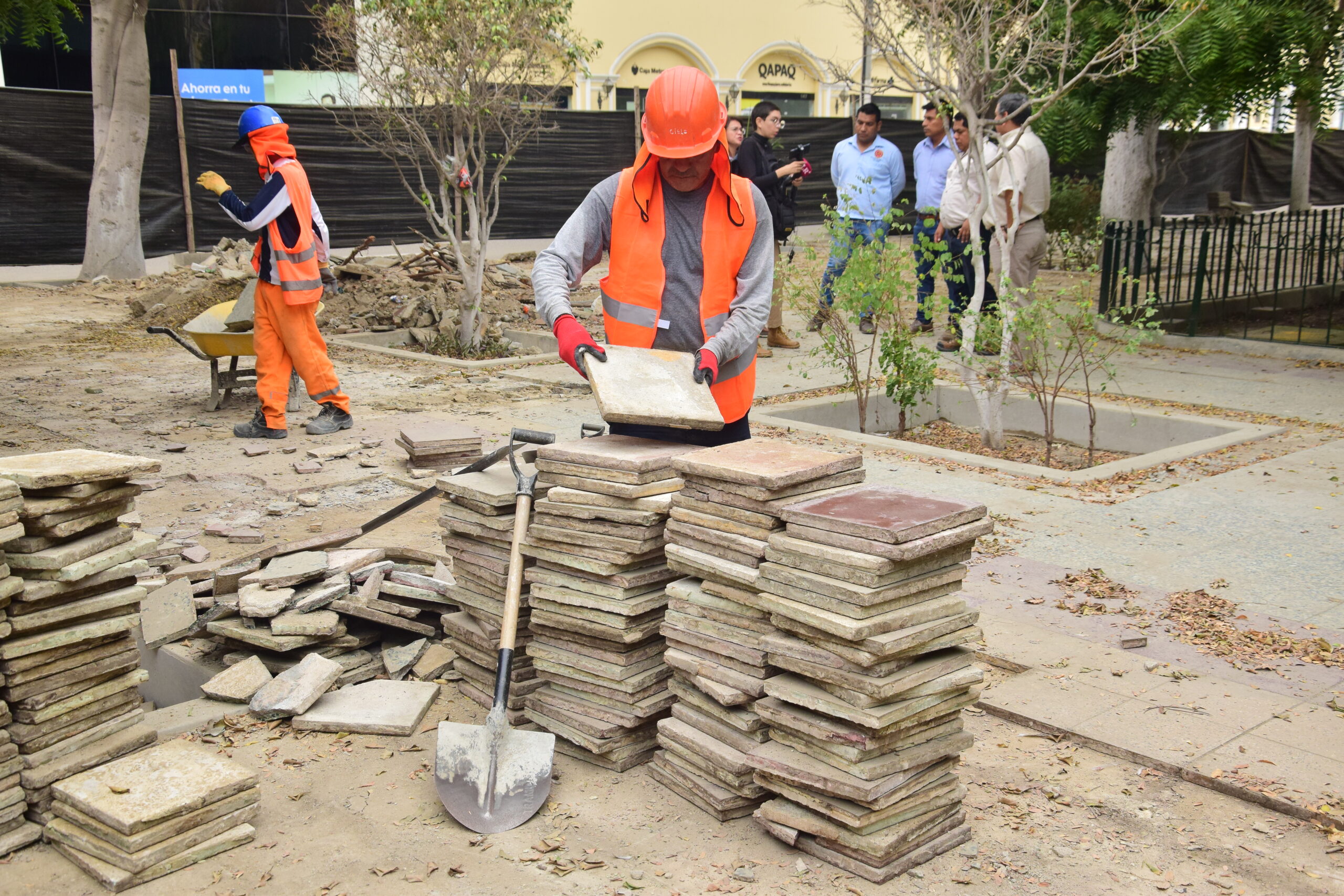 Iniciaron los trabajos de remoción del actual piso de la plaza de Armas de Piura para la colocación de un nuevo terrazo. La obra, valorizada en 1 millón 80 soles, estará lista aproximadamente en dos meses, según informó el jefe de División de Obras.