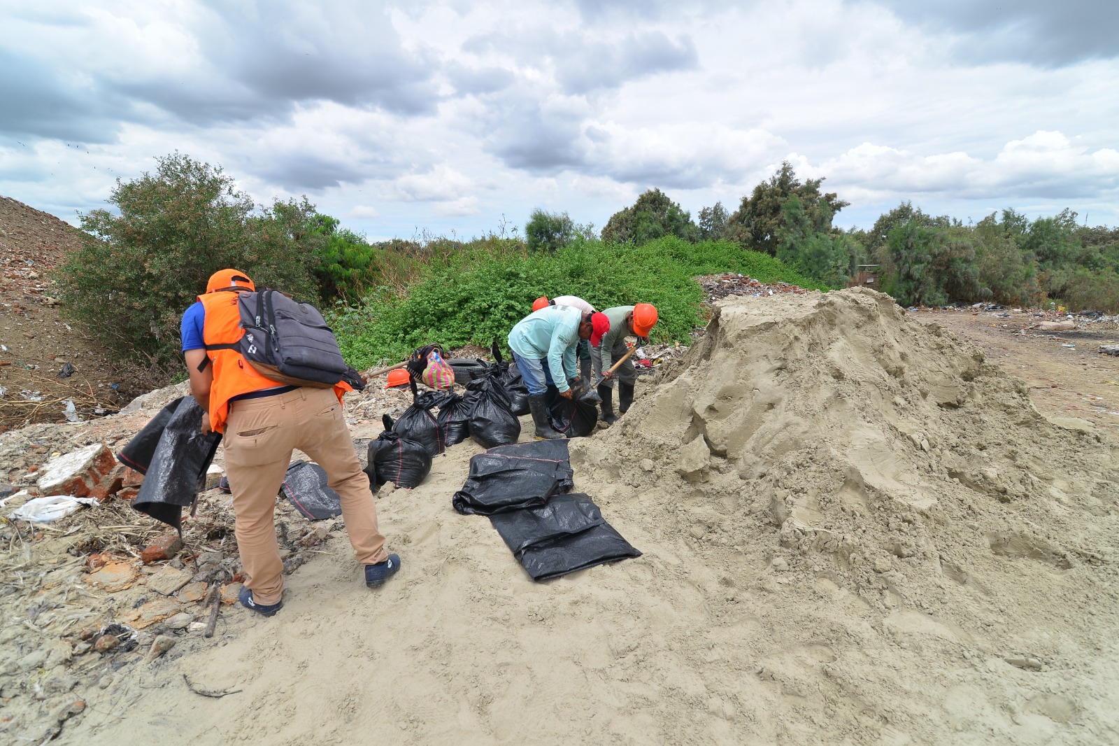 El jefe de Maquinaria, Ing. Ángel Espino, explicó que se está utilizando material de la zona para reforzar la ribera, y evitar un posible desborde.  También se está llevando material al A.H 4 de Mayo.