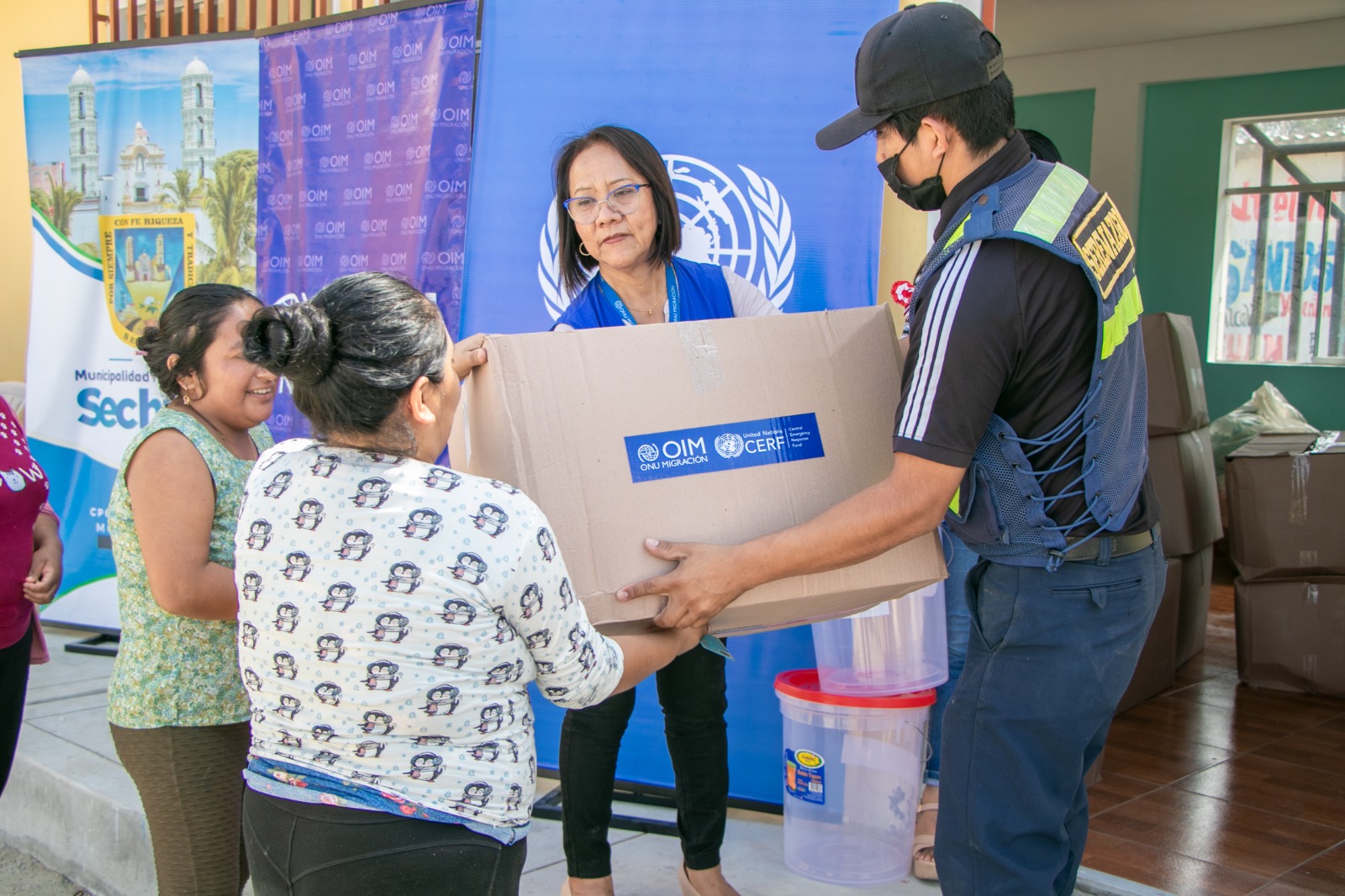 La Organización Internacional para Migración -OIM-, es una Agencia de las Naciones Unidas, que junto a la municipalidad de Sechura entregaron ayer viernes ayuda humanitaria a 120 familias vulnerables de Llícuar.